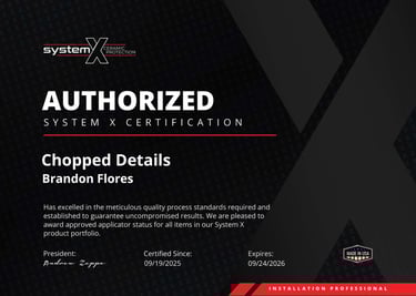 We partnered with SystemX (official supplier to West Coast Customs and Boeing) to provide you with professional-grade ceramic coatings that maximize your vehicle's paint's lifespan and leave it with a classy showroom finish.